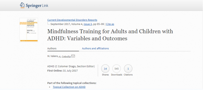Publicamos en Journal Current Developmental Disorders Reports: Mindfulness y TDAH