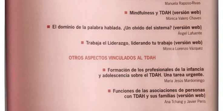 En esta última sección, encontrarás el artículo «Mindfulness y TDAH: el programa MYmind» que he tenido la oportunidad de escribir gracias a la Dra. Ana Tchang que lidera Red TDAH y que ha sido la responsable de que se pudiera dedicar todo el contenido de esta publicación, a la difusión y comprensión, desde todos los ámbitos del TDAH.